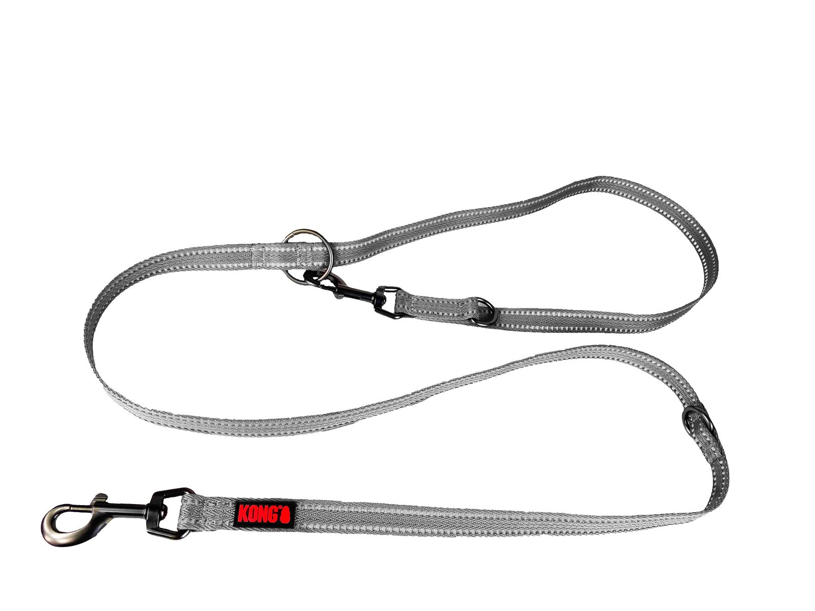 Es una correa de nylon suave y duradero, tiene dos franjas de costuras anchas y reflectantes visibles a ambos lados de la correa, su principal atributo es que al contar con varios anillos la correa se puede ajustar en tres longitudes diferentes.